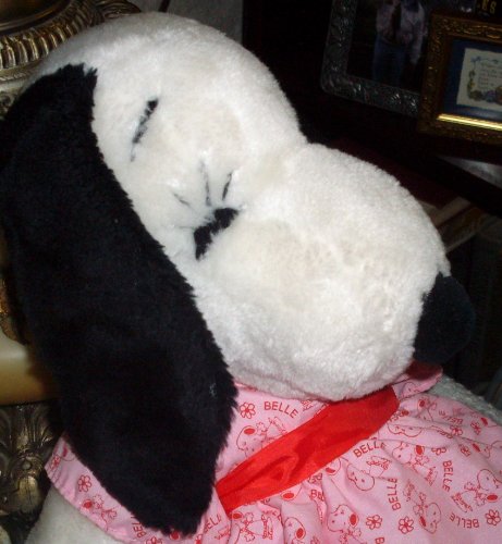 Vintage plush doll by Determined. Belle is the sister of Snoopy. She is 15" tall and wears her original pink dress.
